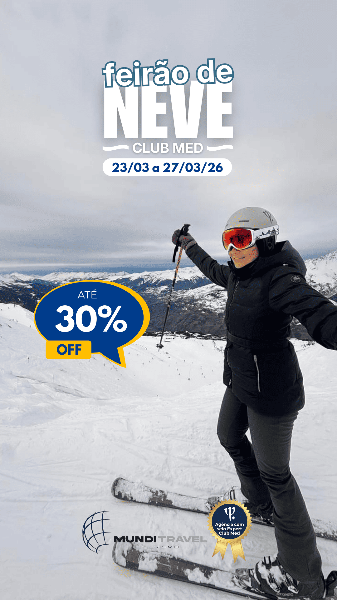 Vale lembrar que, todos os anos, o Club Med realiza a maior promoção de ski da temporada. Em 2026, o Feirão de Neve Club Med acontecerá de 23 a 27 de março, com até 30% de desconto para pacotes da temporada de inverno 2027.